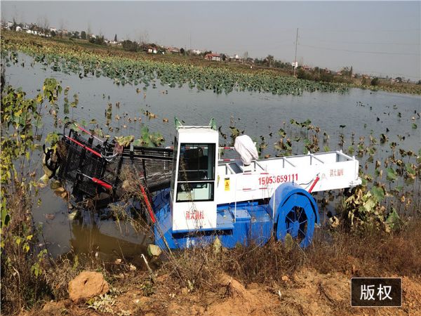 电话:15610293649水葫芦打捞船, 是一种集割草、聚拢、打捞、滤水、输送、卸载等于一体的现代化水草、水葫芦收割设备。所有操作程序采用全液压控制,简单、方便、灵活,是城市水面景区不可或缺的保洁设备,也可作为垃圾清理船、湖面保洁船均收到良好的效果。