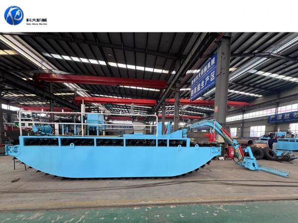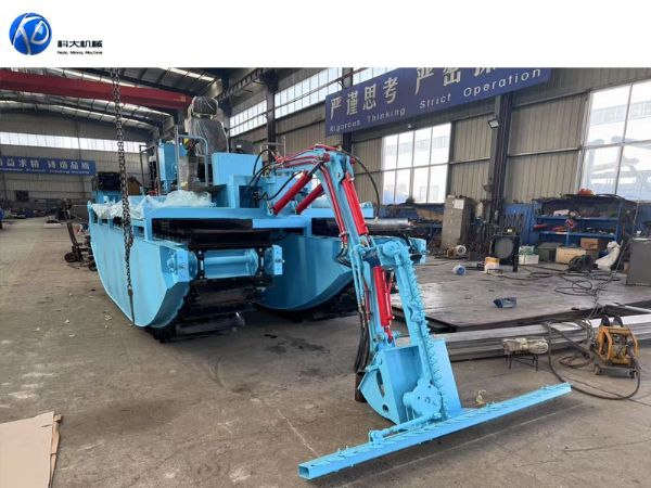 电话:15610293649水陆两栖割草船装车发哈萨克斯坦,水陆两栖割草船也叫做两栖式多功能船,该船采用浮箱履带式试机,既可以在陆地上行走,又能在水上工作,配有挖斗、割草斗、收集耙、T型割等工作单元,可以完成挖掘、收割、排泥、清理杂草垃圾等工作。