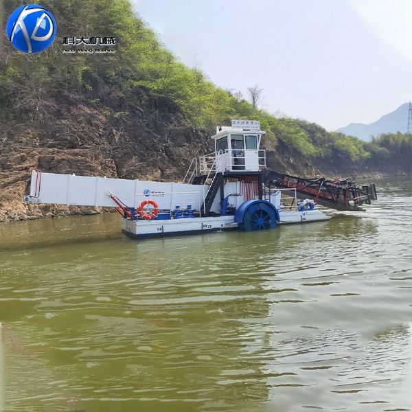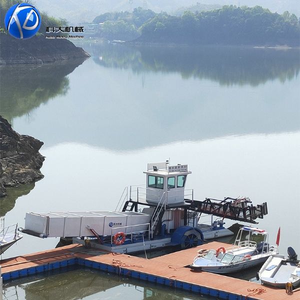 大型全自动垃圾打捞船湖北作业现场:可根据不同作业需求灵活调整速度,转向系统灵活,能在狭窄的河道、拥挤的码头等复杂水域自有穿梭,深入传统设备难以打捞的角落展开作业,确保每一处水域都能得到有效清洁,此外该船还具备良好的稳定性,在风浪较大的水域也能安全作业。打捞上来的垃圾会被输送至收集仓,能容纳大量垃圾和水草等水生植物,减少了打捞船往返卸料的次数,当收集仓装满后,打捞船返回指定卸料点,卸料过程也十分便捷,集打捞、滤水、输送、卸载等一体化功能。