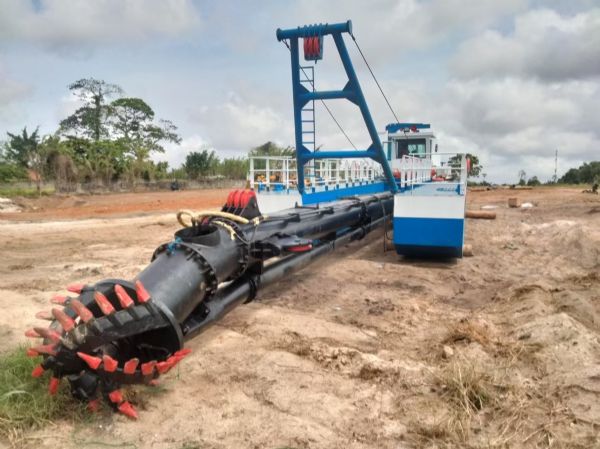 电话:15610293649链斗式挖沙船通过斗桥将下端置于水下一定深度,使其与疏浚土层接触。斗链在动力驱动下连续运转,链上的挖沙斗不断挖取沙石。挖沙斗装满沙石后,随斗链转动提升出水面,直至到达斗塔顶部。到达顶部的挖沙斗经过上导轮改变方向,斗内沙石在重力作用下倒入斗塔中的泥井,再经溜泥槽排出船舷外,完成一次挖沙作业循环。