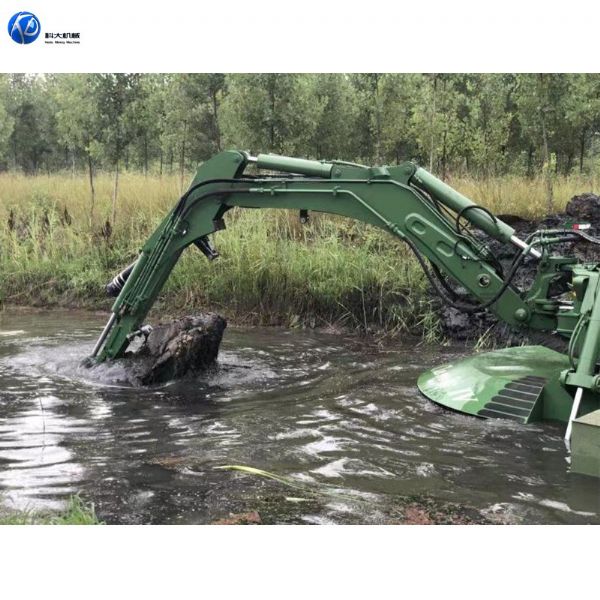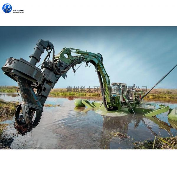 水王挖泥船在江苏现场 两栖式挖泥船设计紧凑,集反铲疏浚作业、绞吸疏浚作业、打桩作业能力于一身。适于在超浅水域、河湖、渠道、池塘及工业沉淀池进行工作