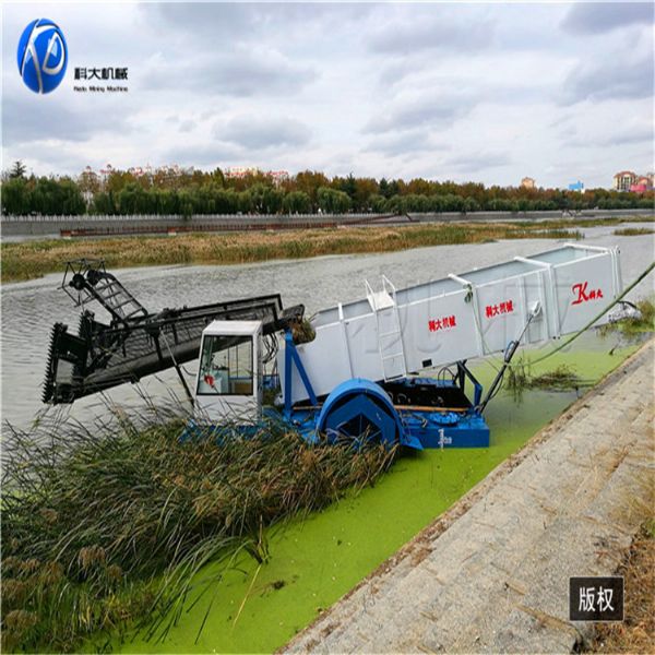 天津中型【全自动芦苇浮萍打捞船】现场视频