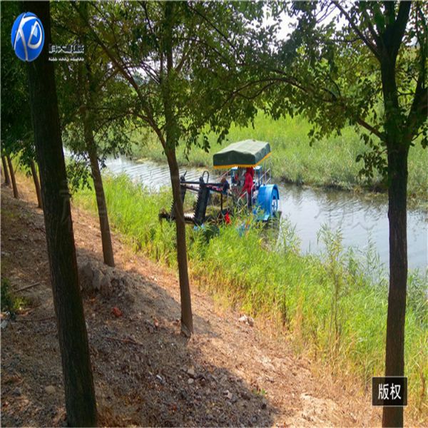 全自动割草船:全自动水草收割船能有效的收集湖面、河道、人工湖水域丛生的水草及水面漂浮物,所有机械联动采用全液压驱动,明轮、割台、割刀和输送链可连续工作,仅需一人操作.全自动割草船装载量打,且在水域能够原地回转,大大减少了低头距离,并加装夜间作业照明系统,能配合紧急任务的夜间作业要求,仅需一人操作。