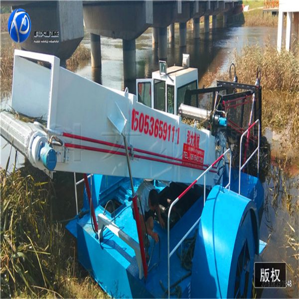 割草船,又称环保割草船,是一种集割草、聚拢、打捞、滤水、输送、卸载等于一体的现代化水草、水葫芦收割设备。所有操作程序采用全液压控制,简单、方便、灵活,是城市水面景区不可缺少的。