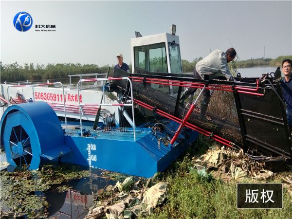 电话:15610293649江苏句容全自动水葫芦打捞船现场视频、